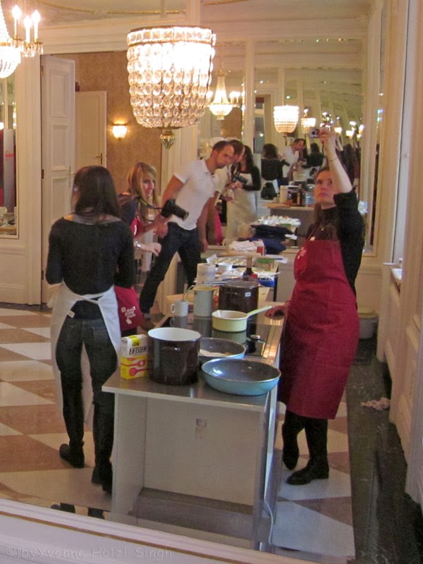 Danach gabs eine kurze Interview-Runde mit Werner Pichlmaier dem Chefkoch vom Sacher, mein zweites Zusammentreffen heuer nach der Sacherkochbuch Präsentation im September. ;-)) Er hat übrigens verraten das es in der Produktion der Sachertorte wirklich nur zwei Menschen gibt die das ganze Rezept kennen, top secret sozusagen. 🙂
