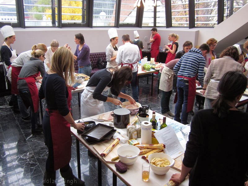 Anschließend wurde gemeinsam mit Michael am Mittagessen gekocht, die Gruppen wurden ausgelost, ich bekam “passender” Weise die Fleisch-Gruppe mit der Ente. 😉