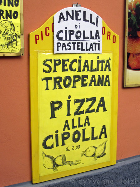 Angeblich soll es auch ein Zwiebel-Eis geben in Tropea, wir haben keines entdeckt. Laut Reiseführer soll dieses aber nur für die Touristen gemacht sein. 😉