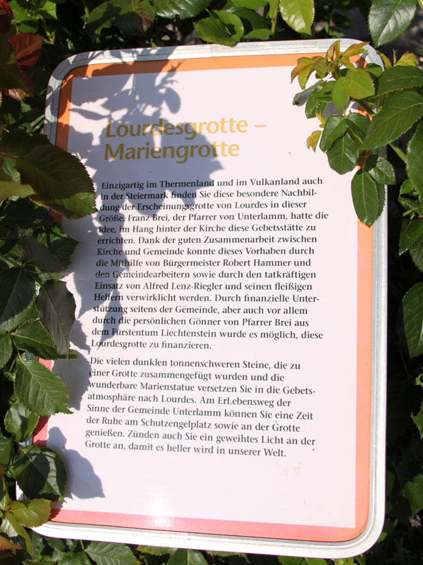 Unser nächster Stop war die nachgebildete Lourdes Grotte hinter der Unterlammer Kirche: