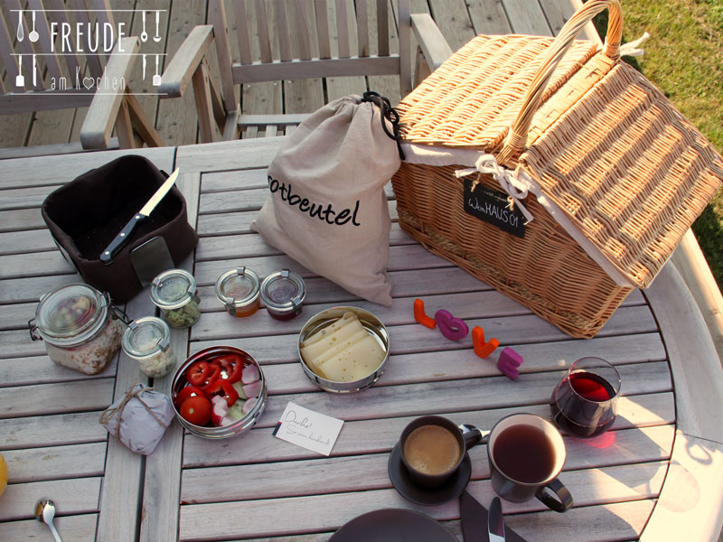 Man füllt schon vor der Anreise, einen Frühstücks-Wunschzettel aus und bekommt dann zur vereinbarten Zeit zwischen 8:00 und 11:00 je nach Wunsch, ein Frühstückskörberl vor die Türe geliefert. (Auf Bestellung gibts übrigens auch gepackte Picknick-Körbe) Zu beachten ist das die Weckerl in Unterlamm ca 1/3 größer sind als die Wiener Weckerl. 😉