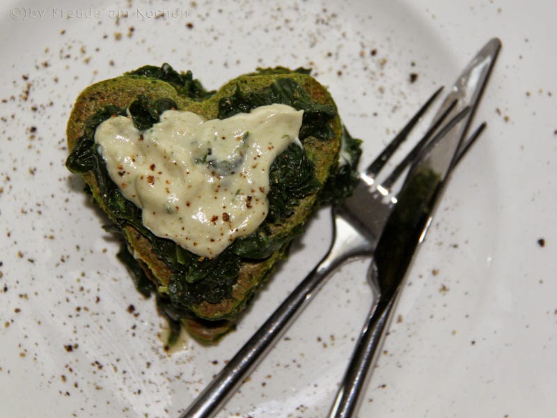 Bärlauch Pancakes mit Bärlauch-Spinat und Cashewcreme