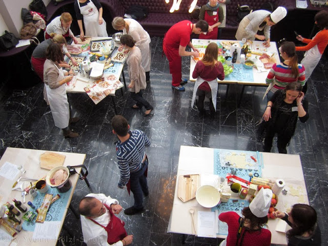 Danach gabs eine kurze Interview-Runde mit Werner Pichlmaier dem Chefkoch vom Sacher, mein zweites Zusammentreffen heuer nach der Sacherkochbuch Präsentation im September. ;-)) Er hat übrigens verraten das es in der Produktion der Sachertorte wirklich nur zwei Menschen gibt die das ganze Rezept kennen, top secret sozusagen. 🙂