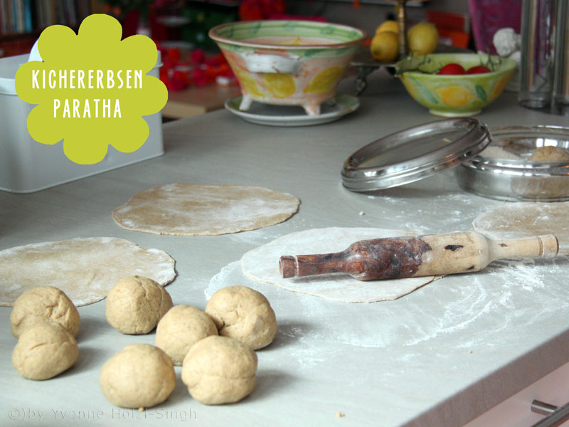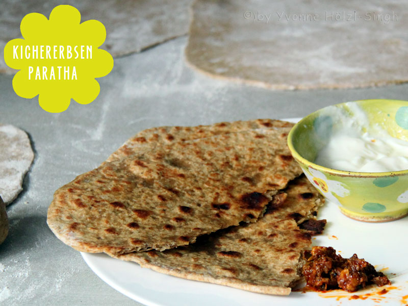 Man kann übrigens auch auf die gleiche Art und Weise Linen-Parathas machen, da verwendet man statt den Kichererbsen dann einfach übrig gebliebenen Linsen-Dhal wie zum Beispiel hier.