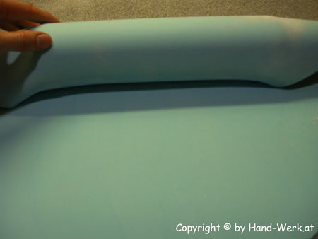 Zum verarbeiten staubt man ein Teigbrett und ein Nudelholz mit Staubzucker ein und rollt das Fondant (das man vorher durch Einkneten von Lebensmittelfarbe je nach Wunsch gefärbt hat) ganz dünn aus (ca 3 mm).